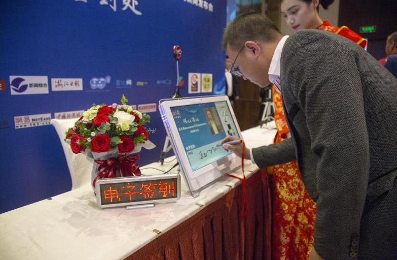 領(lǐng)導(dǎo)和嘉賓們?cè)邶埱f潤品牌墻前達(dá)記者問,拍照留影,在電子簽到墻簽到。